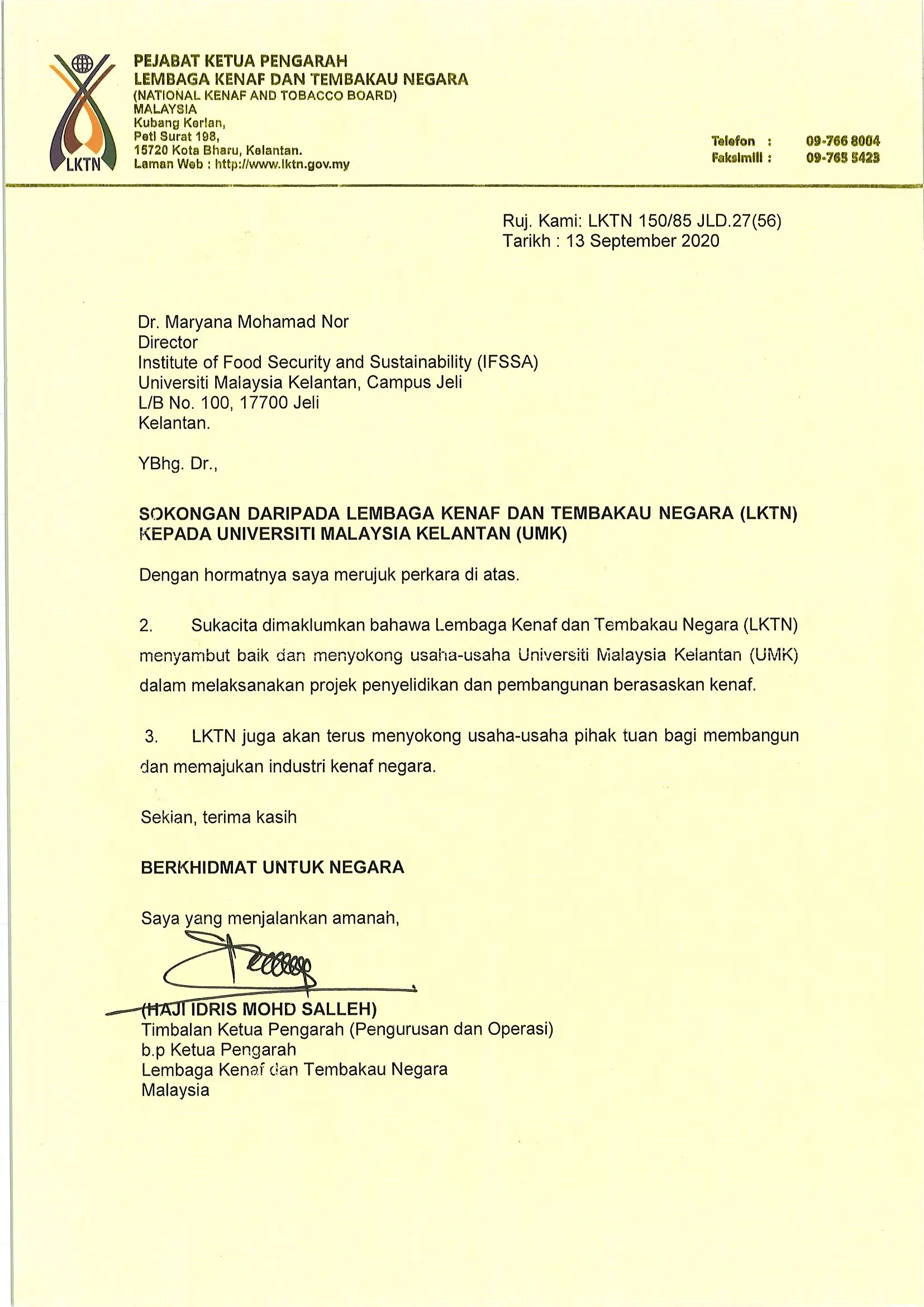 Majlis penyerahan cek perlesesanan pengkormersialan produk Biokenaf® di Universiti Malaysia Kelantan bersama Aura Biocare Sdn. Bhd.