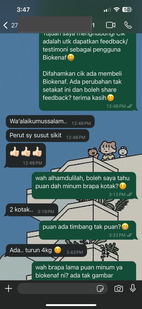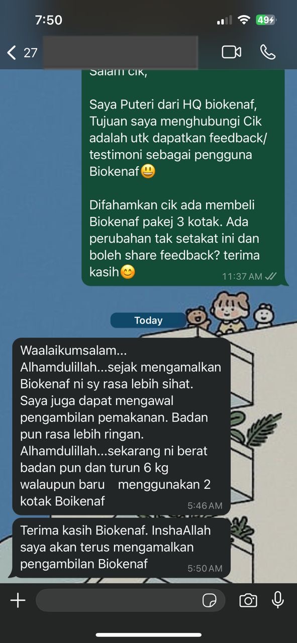 Kesan Dialami Pengguna Biokenaf Seawal 28 Hari Melalui Temubual Whatsapp