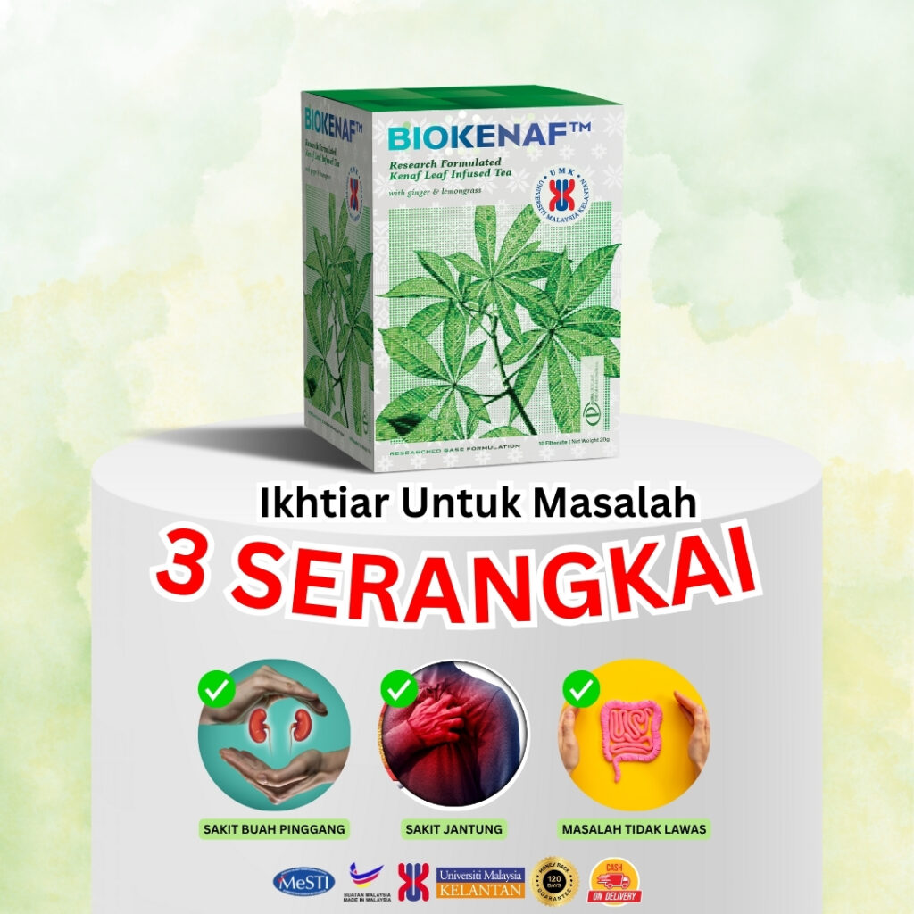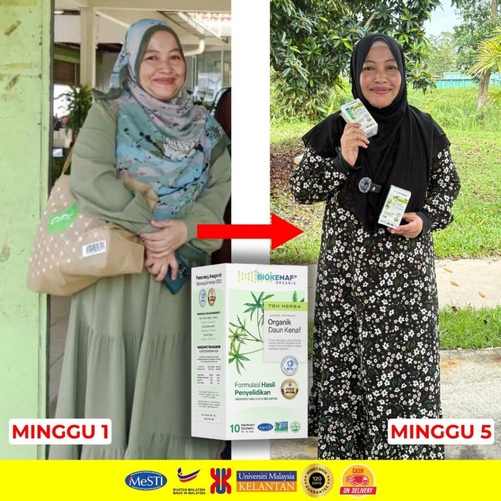Biokenaf diformulasi oleh pasukan Dr. Maryana dikaji berkesan dengan bukti selama 4 tahun selain memastikan produk selamat diamalkan tanpa kesan sampingan 100% organik tanpa bahan pengawet.