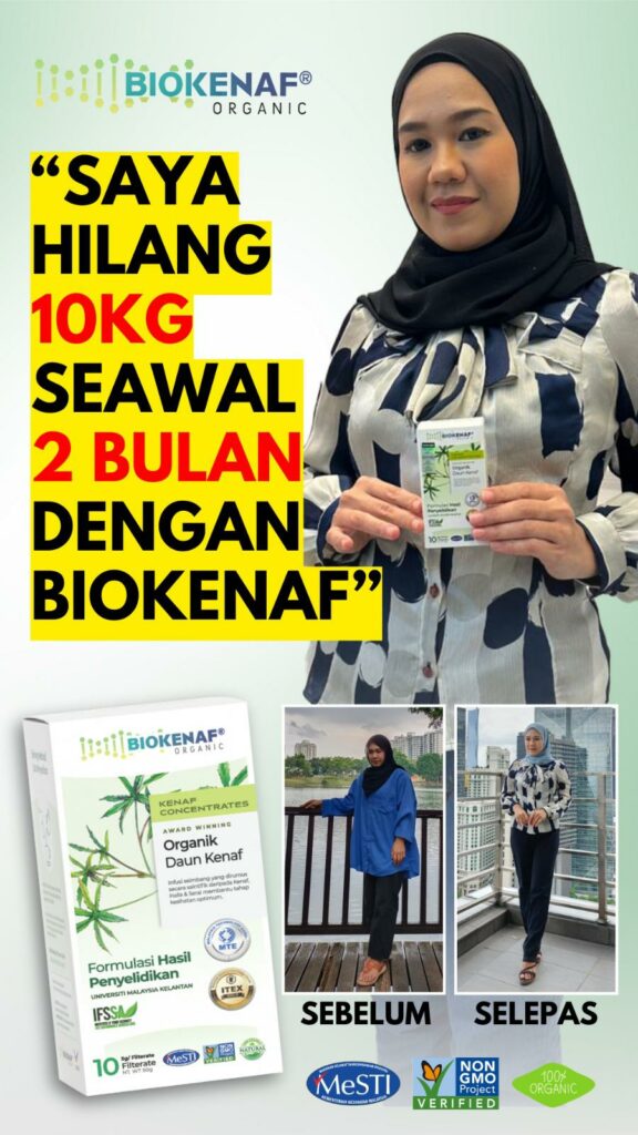 “Sebagai seorang saintis, saya perlu buktikan keberkesanan produk ini, bukan sahaja melalui kajian terperinci, dengan amalkan Biokenaf® saya dapat buktikan penurunan berat & penghapusan kolesterol jahat secara natural.” – Ts. Dr. Maryana Mohd Nor